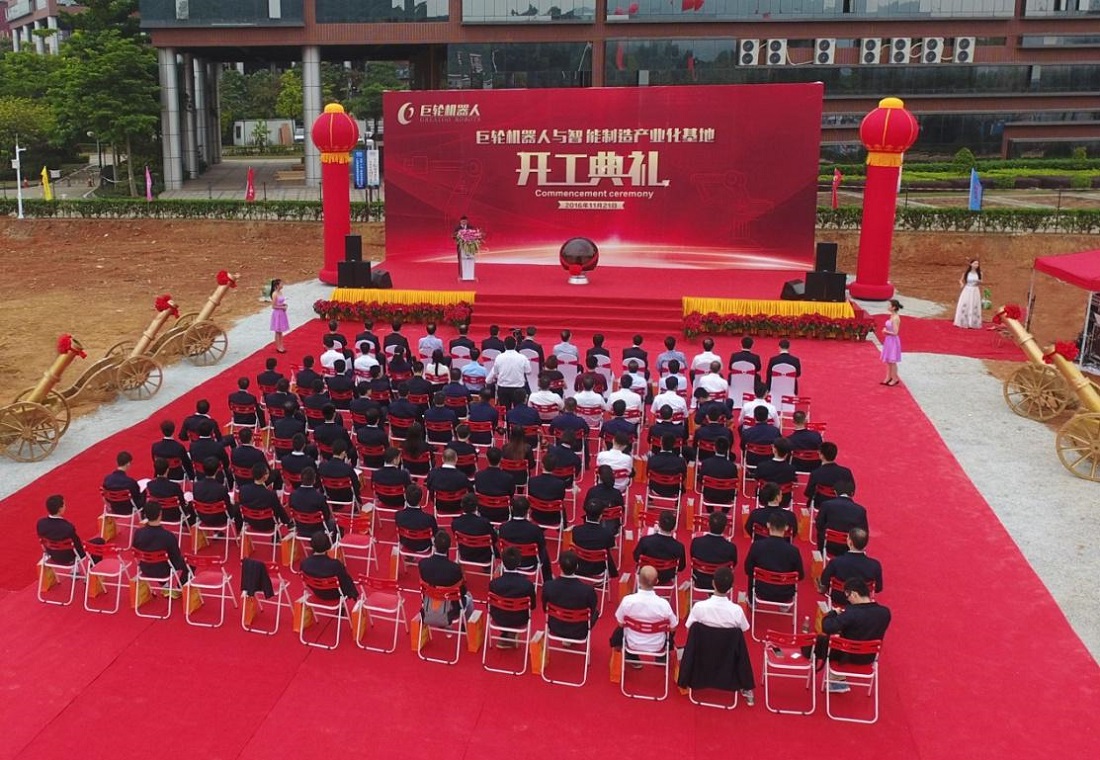接着主持人邀请全体董事走上庆典舞台准备启动电子球,宣布正式开工,随着礼炮响起,音响奏乐,巨轮机器人与智能制造产业基地开工庆典也圆满结束。该项目的破土动工,意味着巨轮智能真真正正的在广州这个世界级的大都市扎根落户,意味着机器人与智能制造将成为巨轮的新业态。更有诗赞曰: