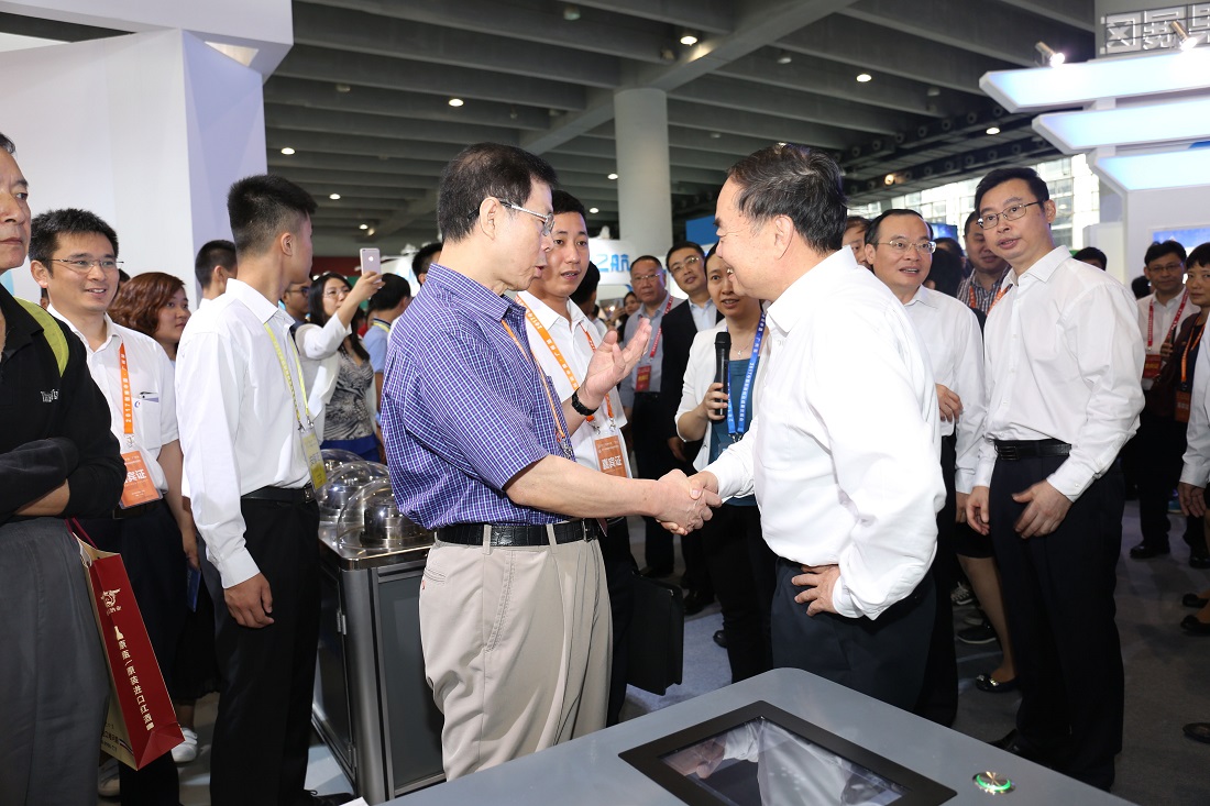 吴潮忠董事长与杨煜俊总经理等来到展会现场,陪同省、市领导参观了公司展位,吴潮忠董事长向来宾详细讲解了公司参展的机器人功能、用途等,并对公司未来发展前景作了简要的说明,来宾在参观后对公司科研工作给予了高度评价,希望企业要坚持自主创新的道路,继续提高智能技术水平。