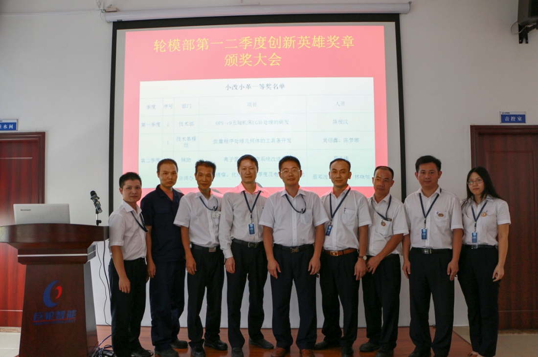 洪泽斌总经理对获得“创新英雄奖章”全体人员表示了祝贺和感谢,鼓励大家继续发扬敢于突破、敢于标新立异的精神来促进事业部的发展,同时还强调了事业部的发展思路以及核心经营管理的理念,即“坚持转型升级,做精品模具,走全球中高端客户路线”,号召大家坚定目标、坚信信念、坚守初心,围绕三大战略主题“技术领先、效益驱动、精益为本”来开展各项技术创新工作。