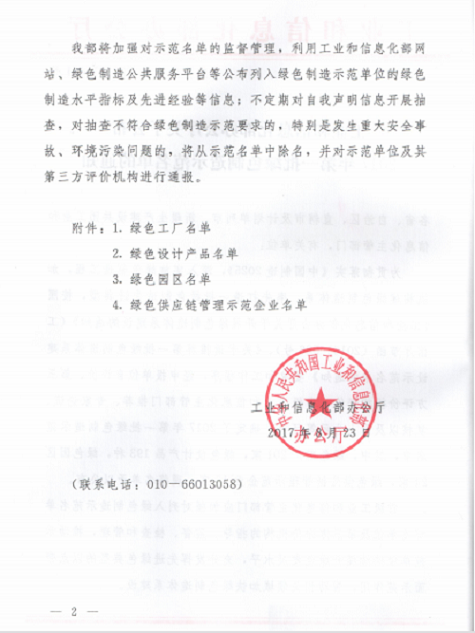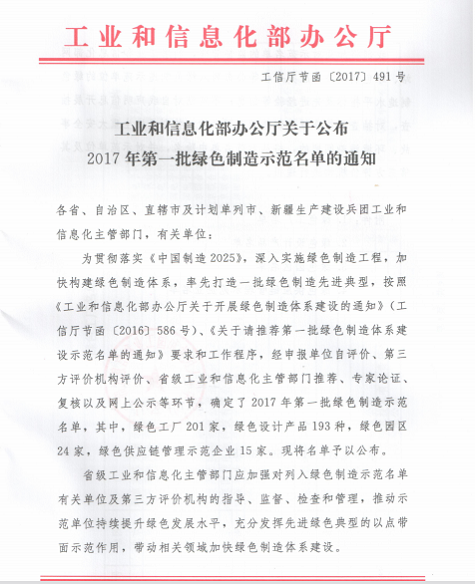 The Greatoo was select as the first batch of national green factory by Ministry of Industry and Information Technology